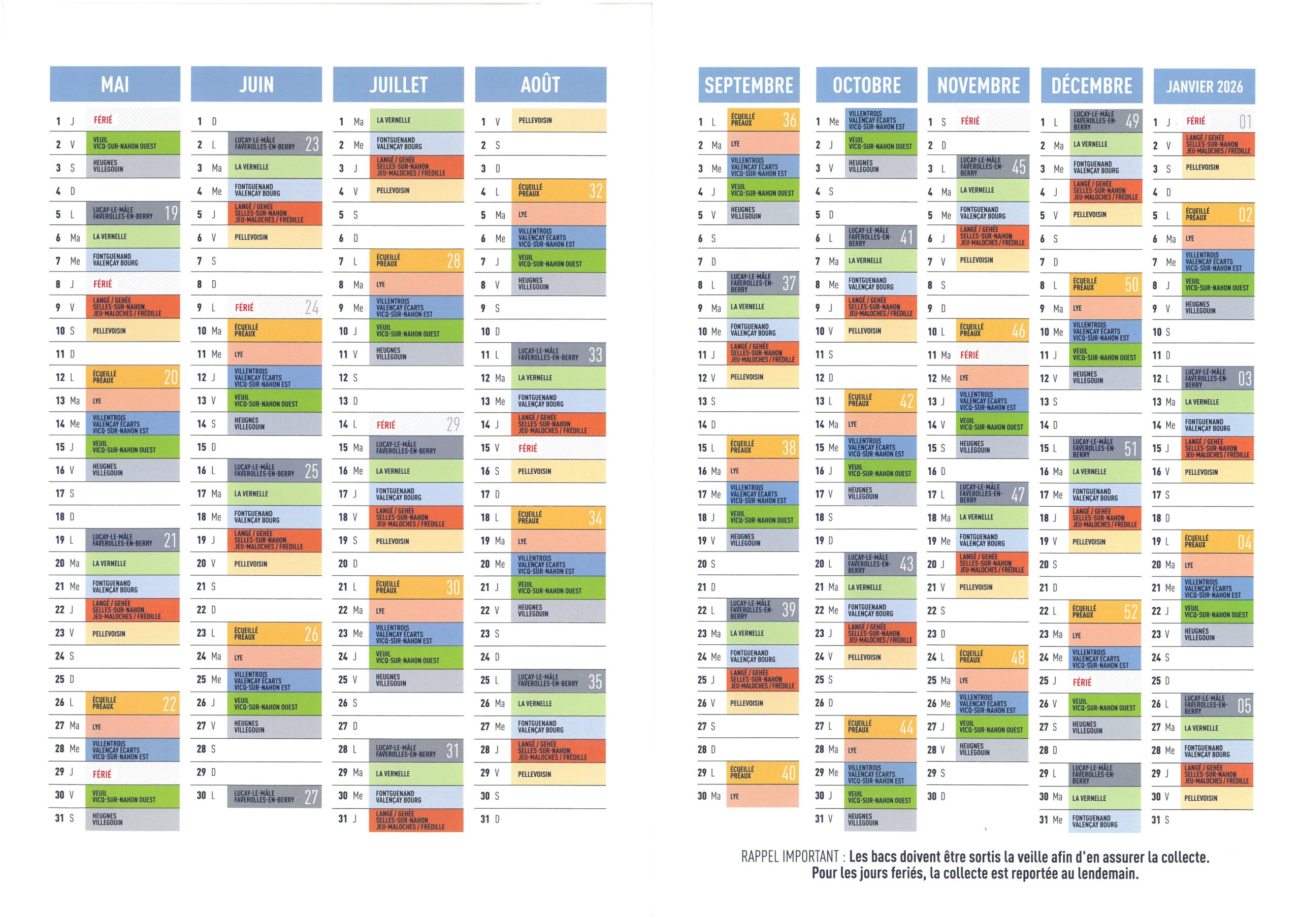 En cas de jour férié (le lundi), la collecte sera reportée au lendemain, soit le mardi.